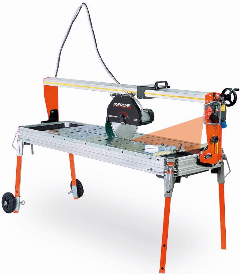 - für Diamanttrennscheiben Ø300mm- 230V / 2.2kW- Schnittlänge : 2100mm (2000mm im Vollschnitt)- Schnitttiefe: 85mm- Blatt schwenkbar für Gehrungsschnitte- zwei Beine mit Räder, Laser